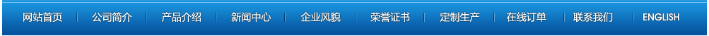 網(wǎng)站首頁 | 公司簡(jiǎn)介 | 產(chǎn)品介紹 | 新聞中心 | 企業(yè)風(fēng)貌 | 榮譽(yù)證書 | 定制產(chǎn)品 | 在線訂單 | 聯(lián)系我們 | ENGLISH 【后臺(tái)管理】